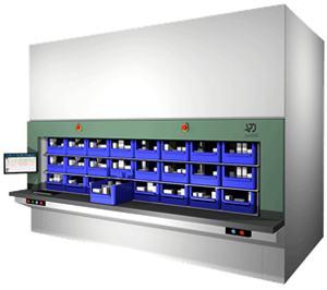 Es un sistema semiautomatizado de almacenaje. Ayuda a maximizar la eficiencia con la administración del espacio. Se caracteriza por ser sistemas de ordenación caótica que contienen estanterías móviles de forma rotatoria, con sistemas incorporados de iluminación y de posición mediante una pantalla informativa que indican qué medicación recoger. Además, pueden incorporar reconocimiento por código de barras. Están diseñados para dispensar toda la medicación de la forma más eficiente, indicando en cada momento al técnico las unidades que debe recoger y dónde se deben de colocar. Los sistemas están preparados para integrarse con el software informático de los programas de prescripción, así como los de facturación y compras.