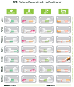 El SPD se basa en el reacondicionamiento de medicamentos en un sistema cerrado herméticamente en el que se incluyen todos los medicamentos orales que el paciente necesita tomar a una hora determina. El acondicionamiento primario se separa del medicamento para ser reacondicionado en un nuevo dispositivo o blister con todos los medicamentos que debe tomar el paciente.