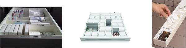 El sistema permite disponer de diferentes niveles de acceso al medicamento y para ello dispone de diferentes tipos de cajones de menor a mayor control.