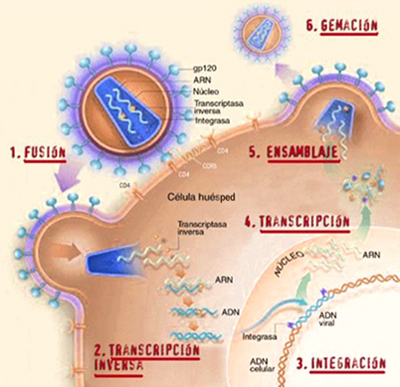 El ciclo vital del VIH se realiza en siete etapas, que son: